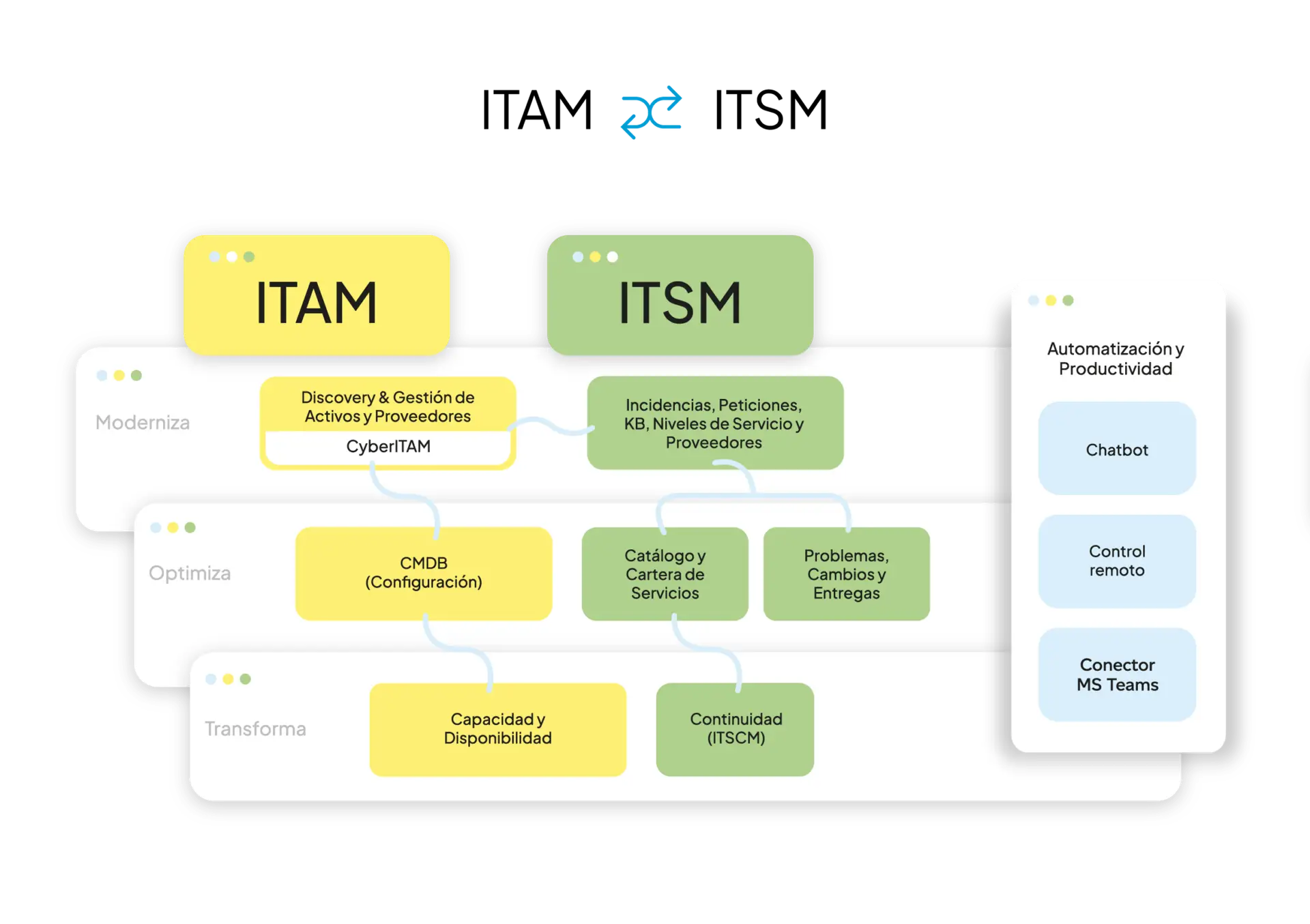 CyberITAM es nuestra solución para que el equipo de seguridad y el de IT hablen el mismo idioma. Integra ciberseguridad con gestión de activos para anticipar vulnerabilidades y garantizar cumplimiento normativo desde el día uno.